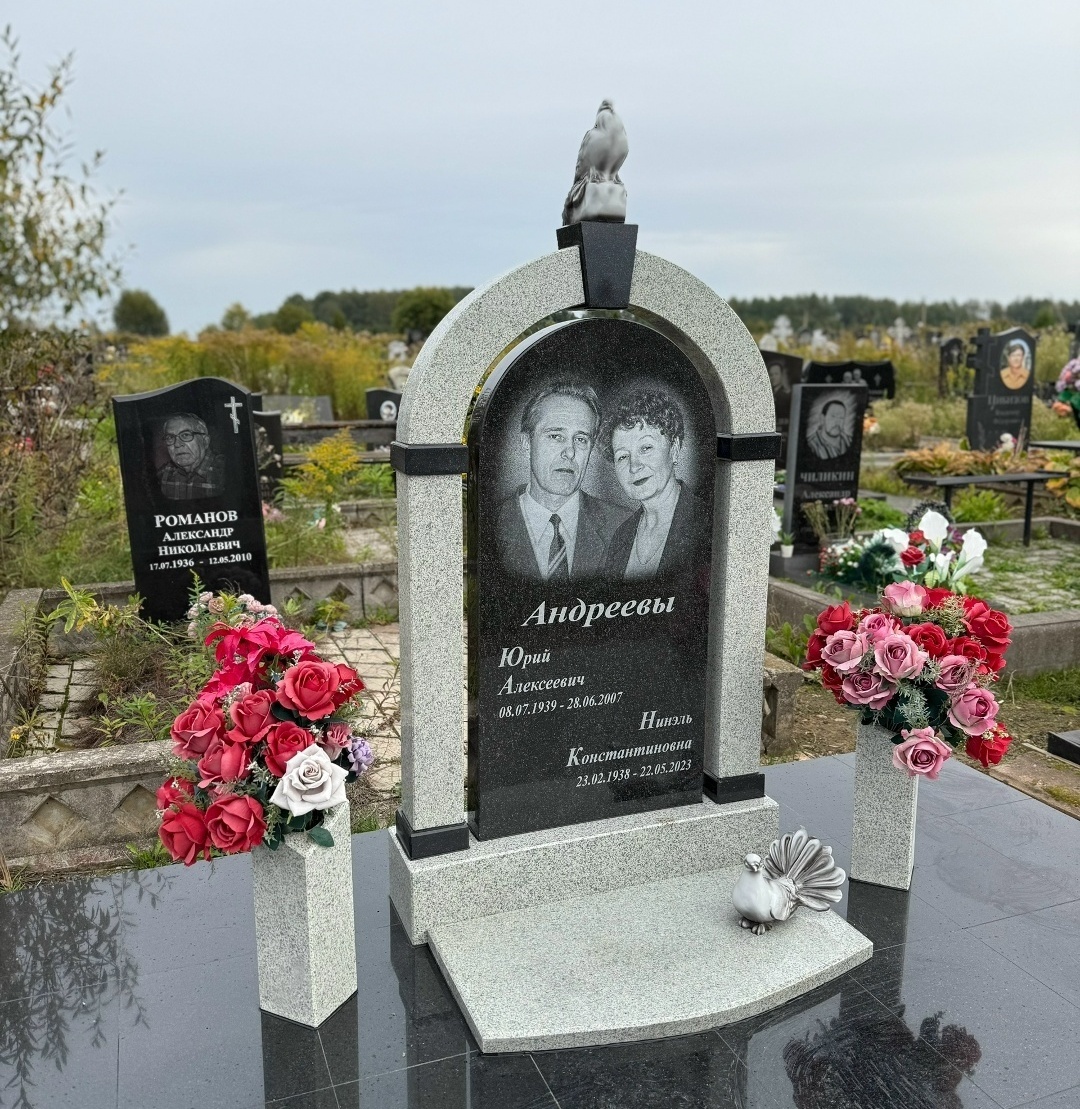Порой случается, что заказчику не нужны какие то формы или сочетания цветов гранитов. Строго и лаконично. Для таких случаев предлагаем данный вариант оформления захоронения по специальной цене в честь светлого праздника.