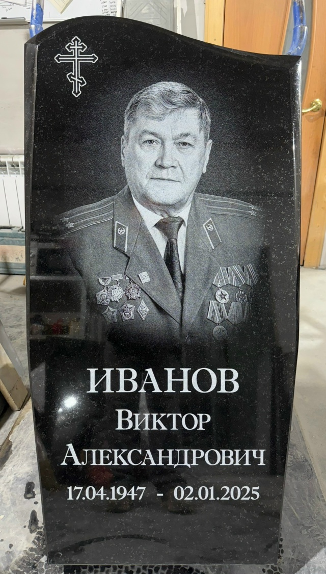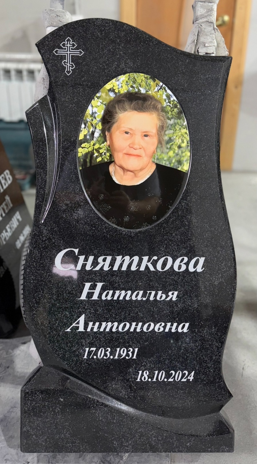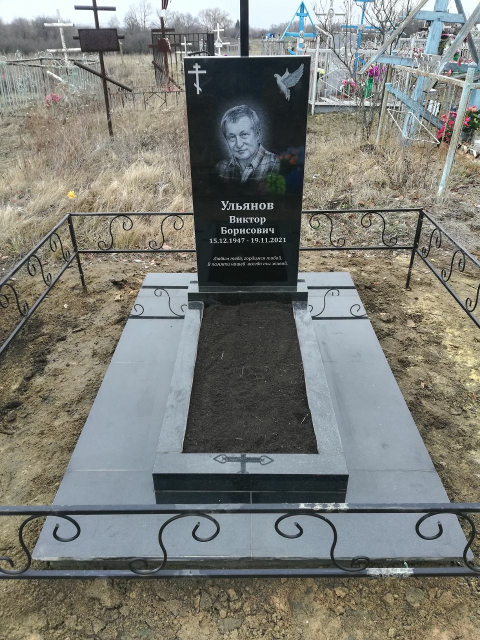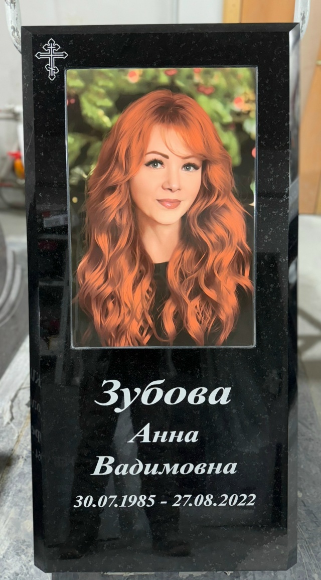 Памятник стела 80 см высотой. Общая высота 100 см. 1 портрет и надпись.
